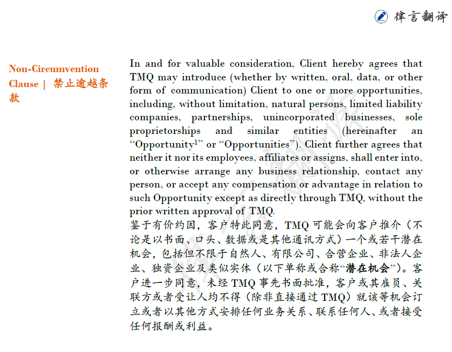 禁止逾越条款 (Non-Circumvention Clause)